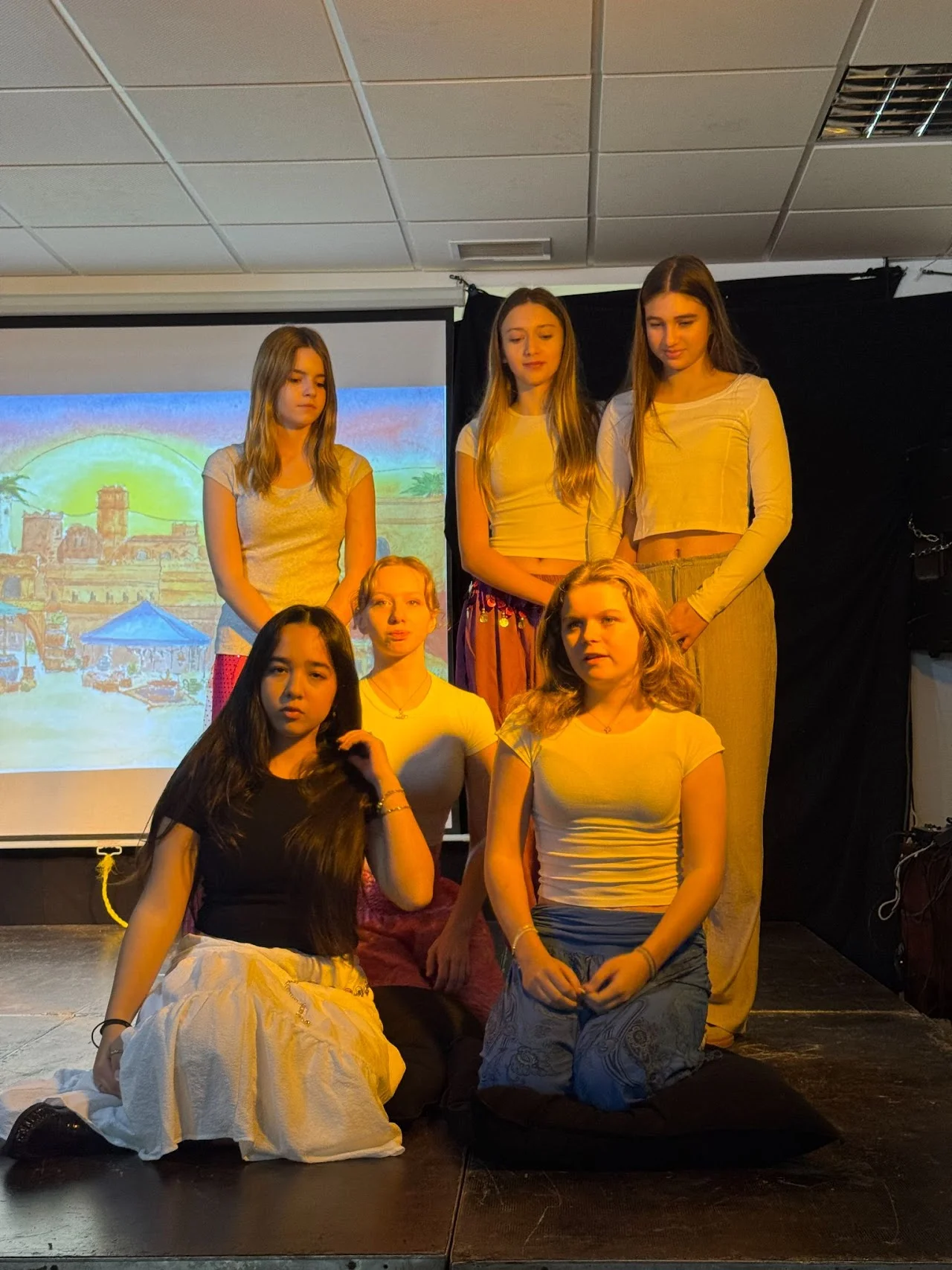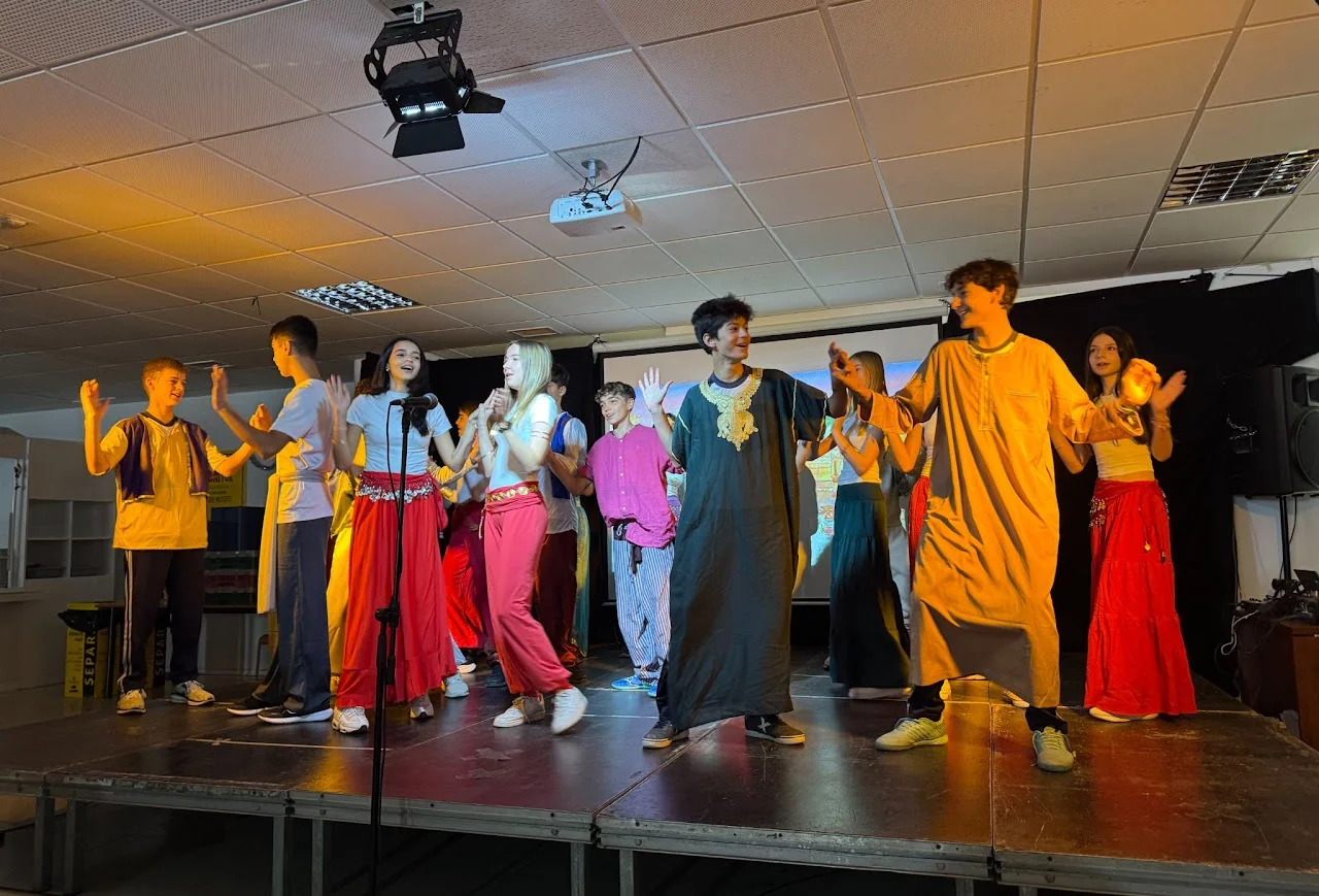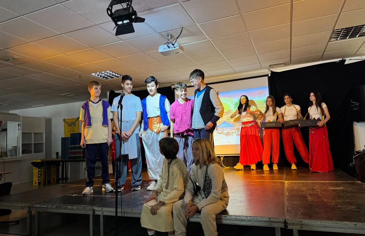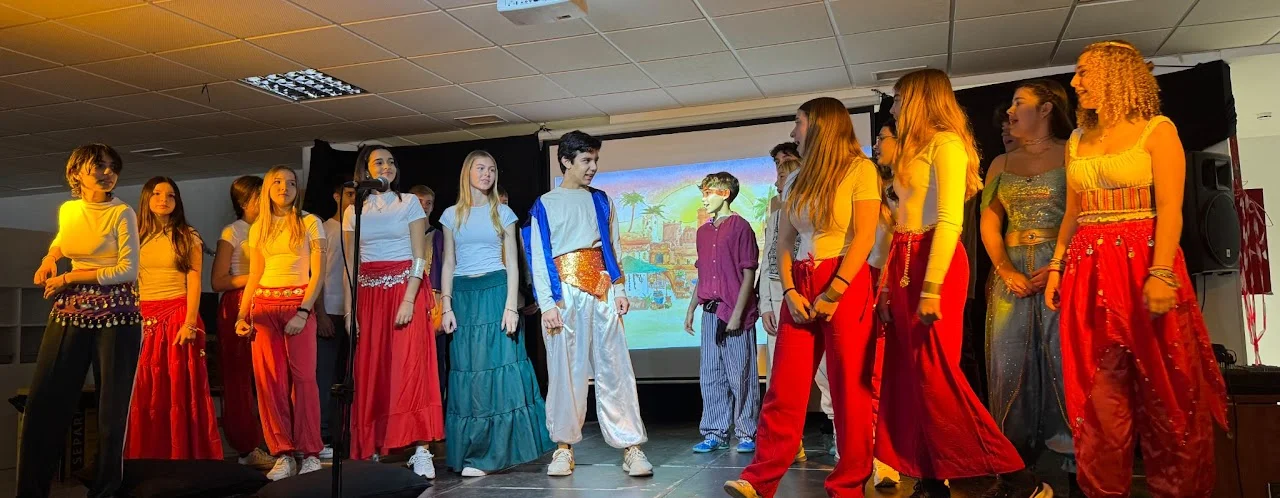 Congratulations to the Year 9 cast of A-la-la-la-la-laddin A musical Tale of Gems and Genies on 6 fantastic live performances of the show in December 2024.Each member of the cast have worked diligently on their lines, songs and dance routines to make this show a success.A very special thank you to Oleksandr Z. 9C for designing and painting the backdrop for the show.A-la-la-la-la-laddin was a joint production between the Performing Arts, Music and Art Departments in The British School Malaga.