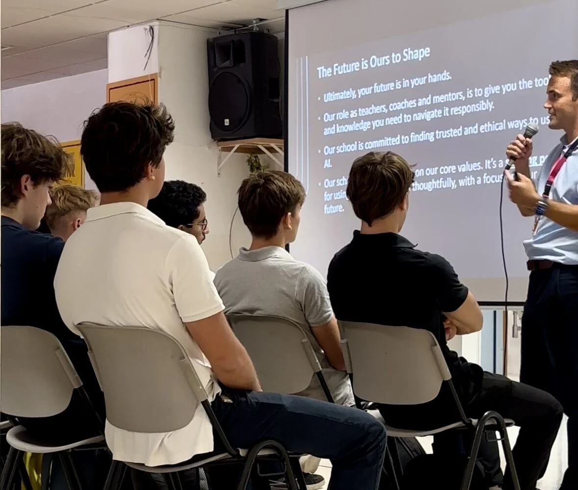 The presentation took students on a journey from the early days of mobile phones to today’s powerful AI tools, like ChatGPT. We emphasised the lessons learned from social media and smartphone use, highlighting how critical it is for students to approach AI thoughtfully and responsibly.